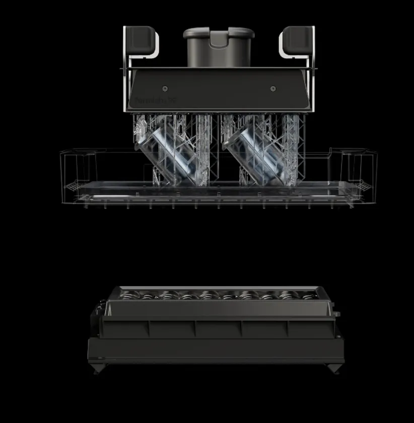レジンカートリッジの形状も再設計されており、従来と同じ1リットル容量でありながらプラスチック使用量を63%削減し、容器底面の面積が小さくなったことで保管場所も半減できます。