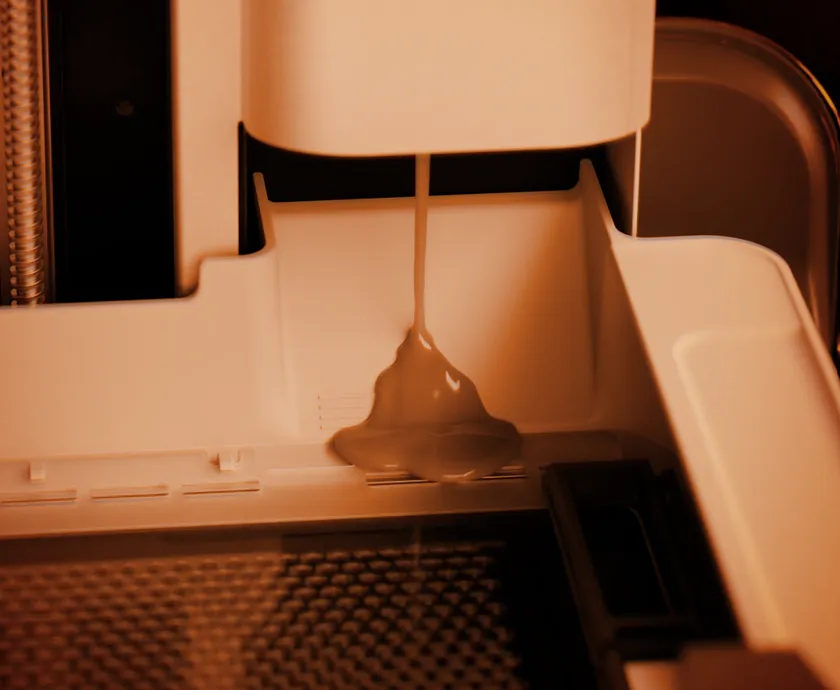 フレキシブルフィルムレジンタンクは、新たに積層されたレイヤーがタンク底部から剥離される際に、柔らかいフィルムがわずかに持ち上がり、たわむことでレイヤーの端から優しく引き剥がし、造形品にかかる剥離力を最小限に抑えられます。