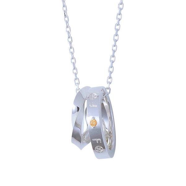シンプルな2連リングのトップの片方にはイメージカラーストーンをセット。