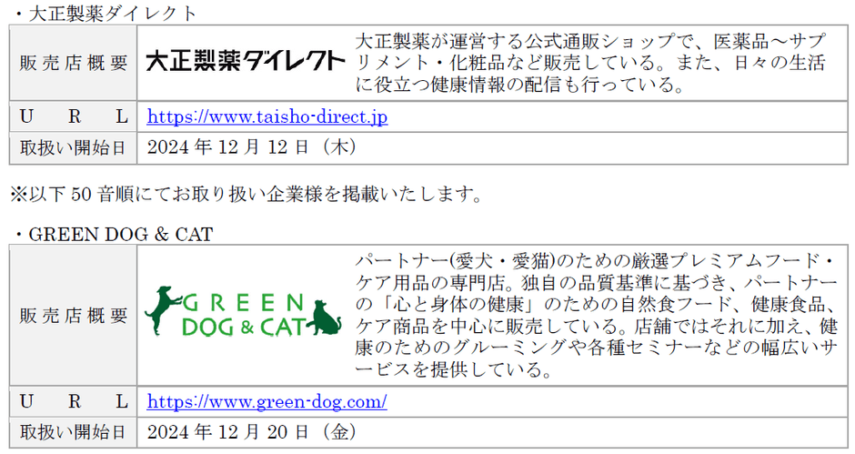 大正製薬株式会社[本社:東京都豊島区 社長:上原 茂](以下、当社)は、愛犬用・愛猫用サプリメント(犬用・猫用健康補助食品)となる「わんビオフェルミンS」「にゃんビオフェルミンS」を2024年12月12日(木)より順次発売※いたします。