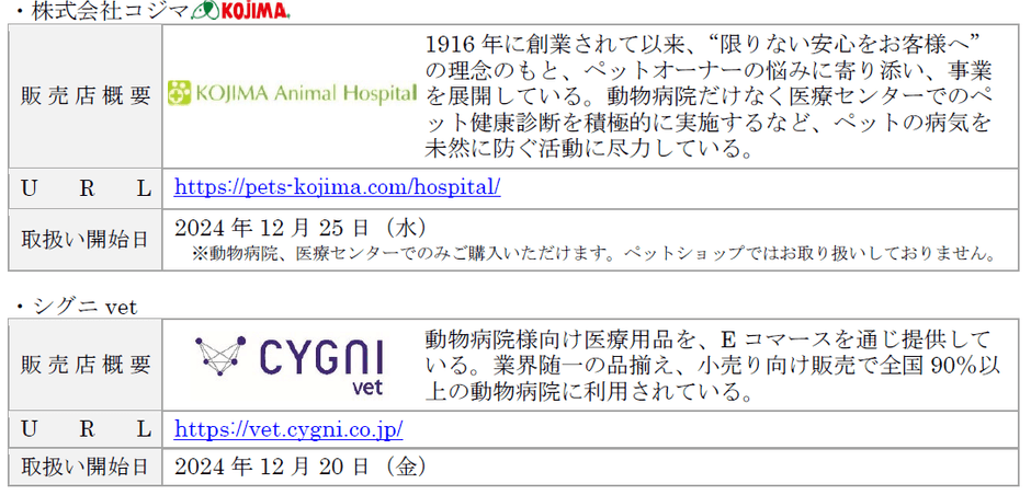 発売時においては、わんビオフェルミンS・にゃんビオフェルミンSは下記販売店様でお買い求めいただけます。