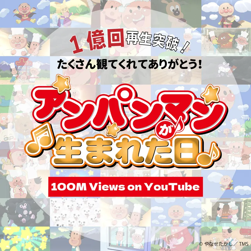 株式会社トムス・エンタテインメント(本社:東京都中野区 代表取締役社長:竹崎忠)は、運営するYouTubeチャンネル「それいけ!アンパンマン【アニメ公式】」にて、配信中の短編映画『アンパンマンが生まれた日』が1億回再生を突破したことをお知らせいたします。