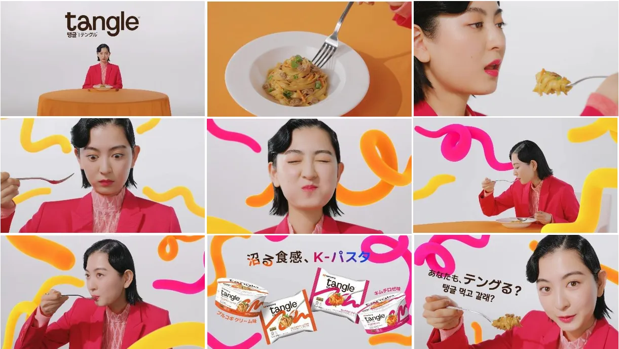 世界累計販売量53億食突破のブルダック炒め麺を販売する「三養ジャパン」から発売! 韓国発のK-パスタ「tangle(テングル)」Web動画。 仮面ライダー女優・成田愛純、食品CMに初出演! もちもちパスタを頬張り驚き&恍惚の表情!