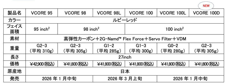 ヨネックス株式会社(代表取締役社長:アリサ ヨネヤマ)は、すべてのプレーヤーが高いスピン性能を体感できるテニスラケット新「VCORE(Vコア)シリーズ」を2026年1月中旬より発売いたします。