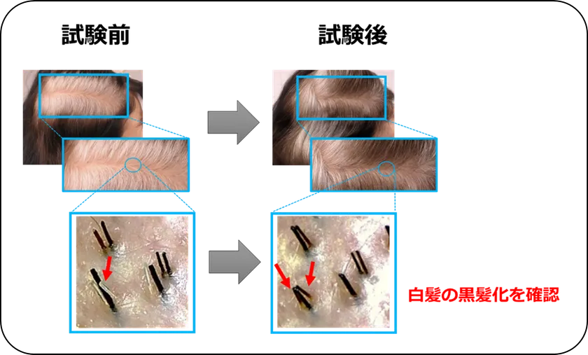 ■ヒトに対して白髪の進行を78%改善。明確な黒髪化も確認。