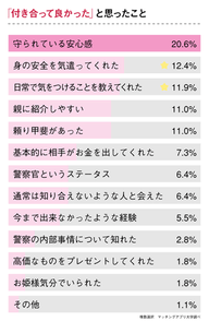 ●自分は警察官で貯金だけはあるんだと会うたび言われました。専業主婦でも支える経済力があるよということも付き合ってから言ってくれた。(28歳・茨城)