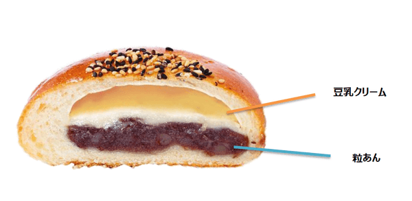 ご年配の方に高いご支持をいただいているあんぱんを幅広い年齢層のお客様にお楽しみいただきたいと思い、開発いたしました。粒あんの塩味と豆乳クリームのほどよい甘さが相まって、おやつ感覚で食べやすいあんぱんが完成しました。緑茶やコーヒーのお供に最適です。ぜひ一度ご賞味ください!