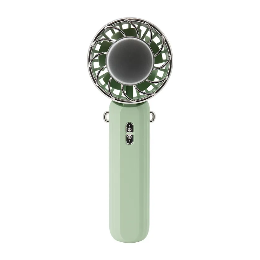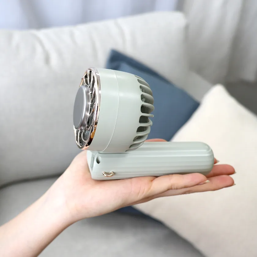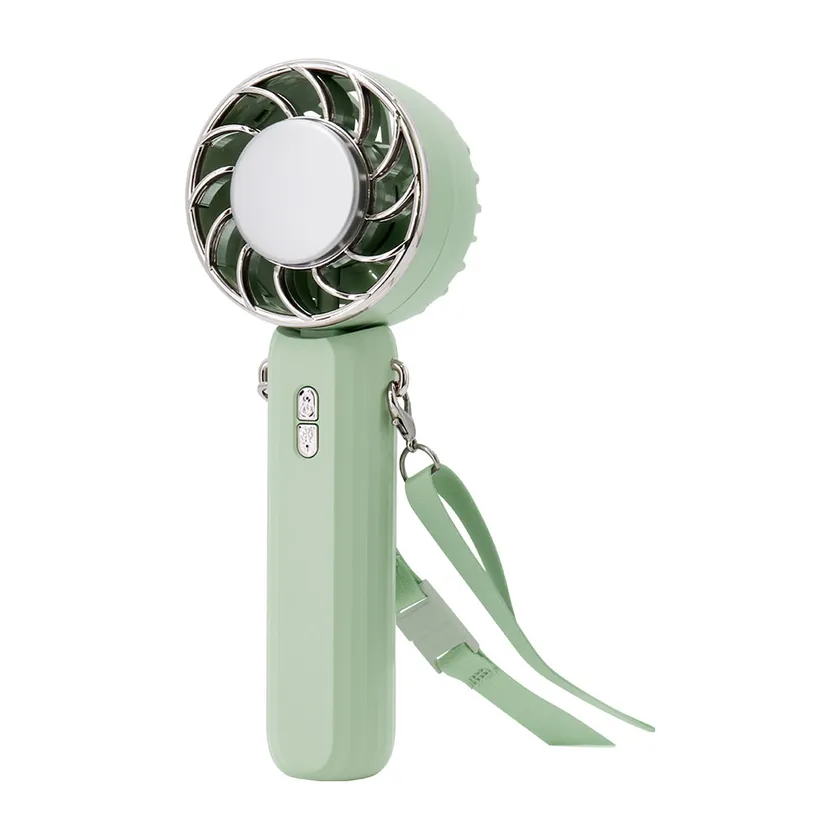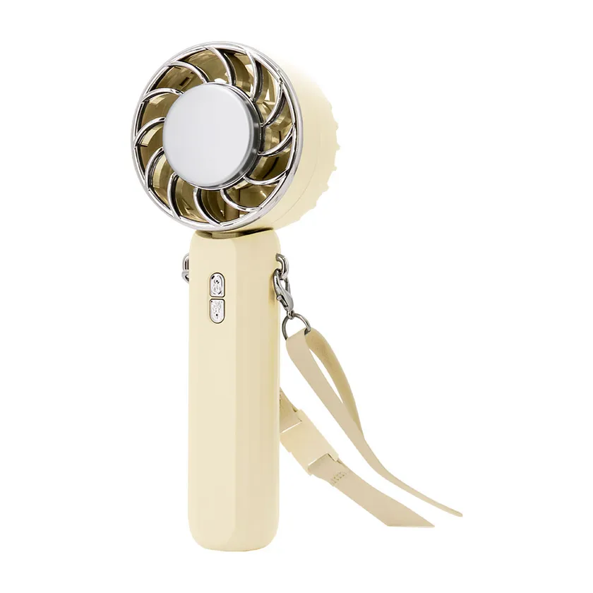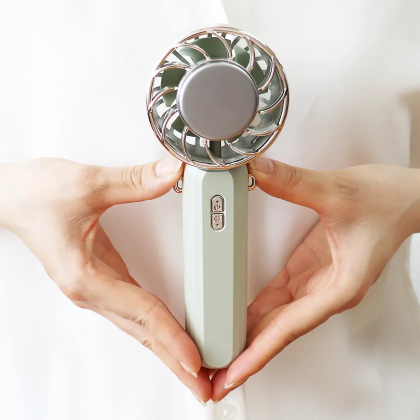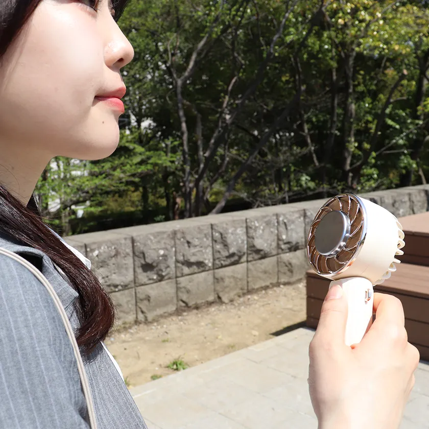 本体重量約170g、直径5cmのコンパクトなヘッド、持ち手を折りたたむことができ、狭い場所やデスクの上で使用できる便利なサイズです。さらに、取り外し可能なネックストラップ付きで、手がふさがる心配も不要!涼しい風にあたりながらペットボトルのふたを開けたり、かき氷を食べることもできちゃいます。