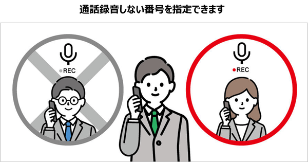 本機能により、通話の録音を行わない番号をあらかじめ設定するだけで、プライバシーに関わる相手先や通話内容が複雑で機微な情報を含む通話をする相手先など、録音トラブルによるリスクを未然に防ぐことができるようになります。