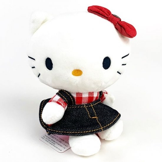 キティちゃんもEDWINのデニムスカートでオシャレ度アップ♪赤のギンガムチェックのシャツもオシャレですよね。
