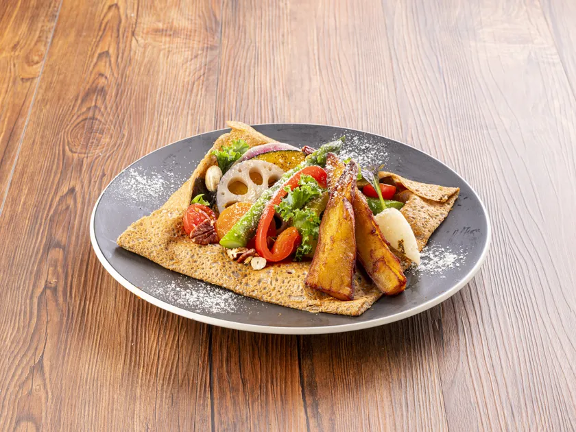 有機野菜をたっぶり使って色鮮やかに仕上げたガレット。