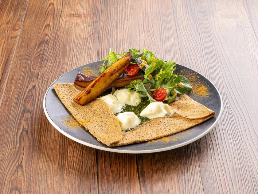野菜の旨みと自然な甘みがラタトゥイユと相まって、食べ進めるほどに、ガレットの生地と混ざり合い、口の中で一体となります。