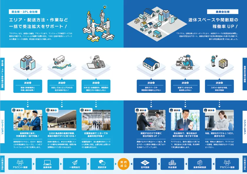 「サバケル」は、倉庫の空きスペースを有効活用するために、荷主や3PLなどの物流企業と倉庫を効率的にマッチングするサービスです。