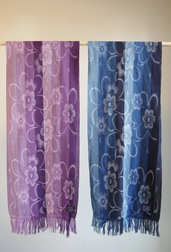 商品名 : 久留米かすりの柔らかストール/グラデーションフラワー