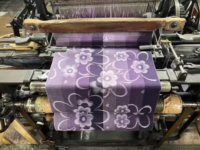 久留米絣(かすり)はどの工程においても熟練の技術が必要ですが、甘織になると柄合わせがさらに難しくなります。しかし、久留米絣の魅力の一つである独特のかすれ模様を表現したいと考えています。