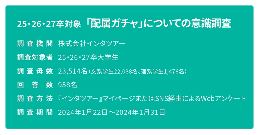 『25・26・27卒生対象「配属ガチャ」についての意識調査』2024年1月実施 株式会社インタツアー