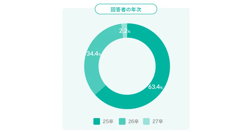 25卒 63.4%、26卒 34.4%、27卒 2.2%