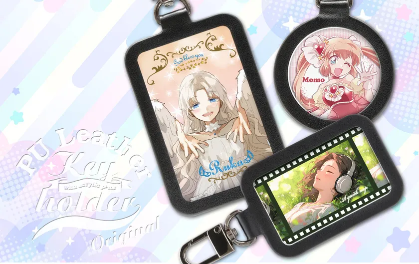 オリジナル PUレザーキーホルダーは、アニメグッズ・漫画グッズ・ゲームグッズなどのキャラクターグッズに最適なアイテムです。キャラクターごとの作成や、印象的なシーンを印刷して、そのままキーホルダーとして身に着けることができます。小ロットでの制作も可能ですので、同人グッズとしても大変おすすめです。