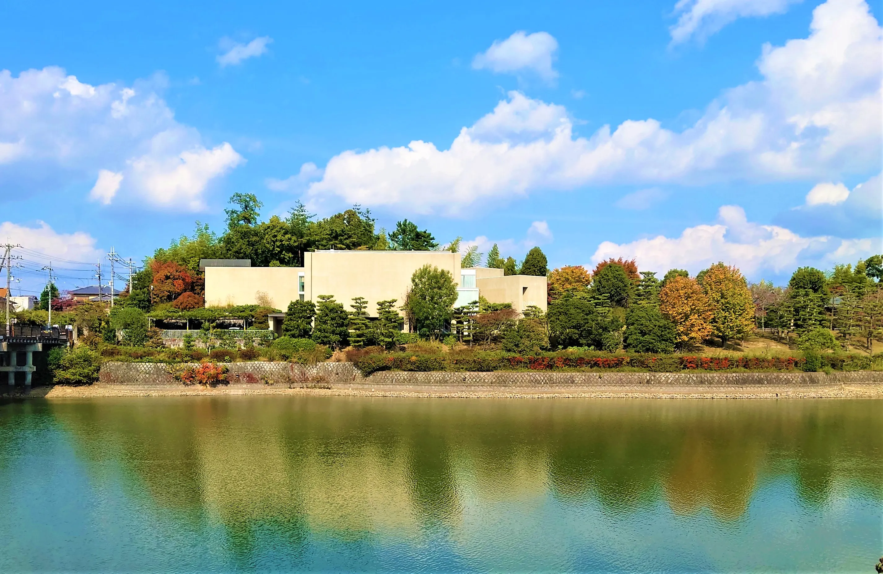 松伯美術館 (外観)※大渕池の対岸から臨む。
