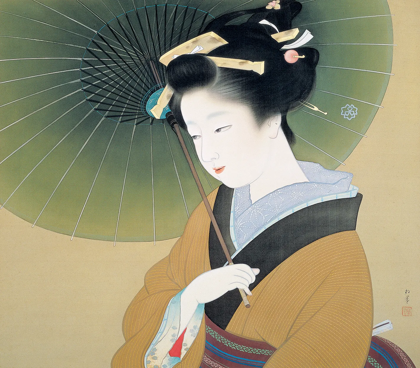 京都に生まれる。鈴木松年、幸野楳嶺、竹内栖鳳に師事。1948年、女性として初めての文化勲章を受章。京都の風俗、歴史、謡曲の物語等に取材した気品ある格調高い女性像を描く。
