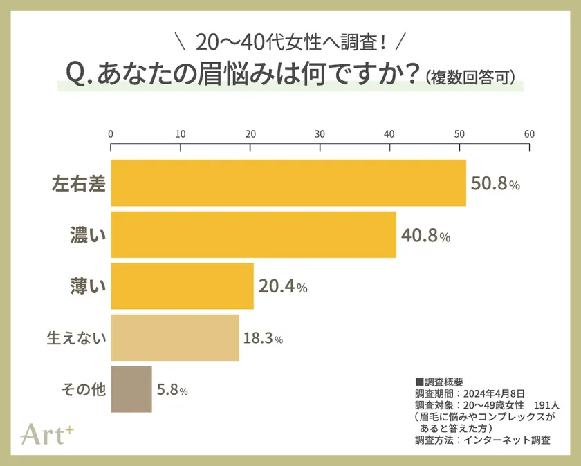 今回の調査結果で、20~40代の女性がどのような眉悩みを持っているのか明らかになりました。