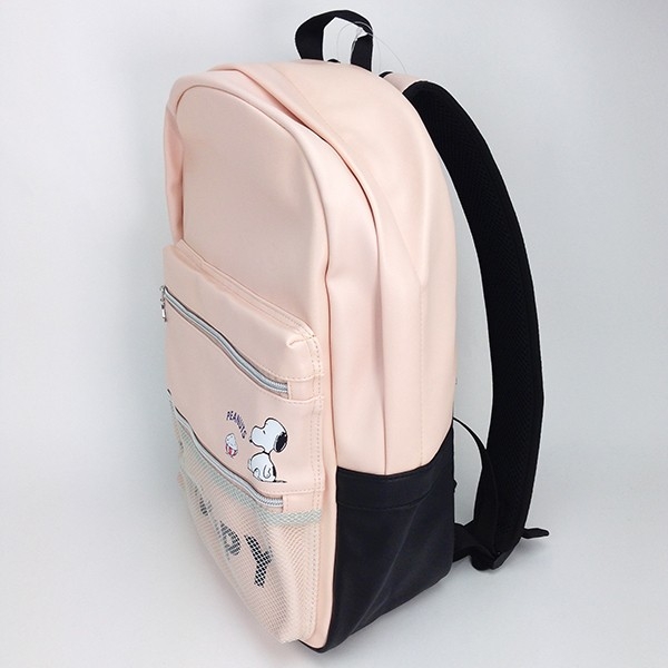 パステルピンクのデイパックは、収納力も抜群です。外側にもファスナー付きのポケットがあり、内側も仕切りやフラットポケットがあります。