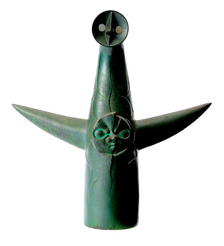 芸術家岡本太郎氏の名作「太陽の塔」の重厚感ある万博当時の置物。