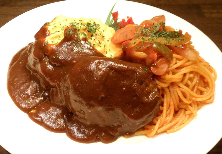 王道のナポリタンやハンバーグなど大人も子供も大好きな味が一度に味わえる贅沢な一品。