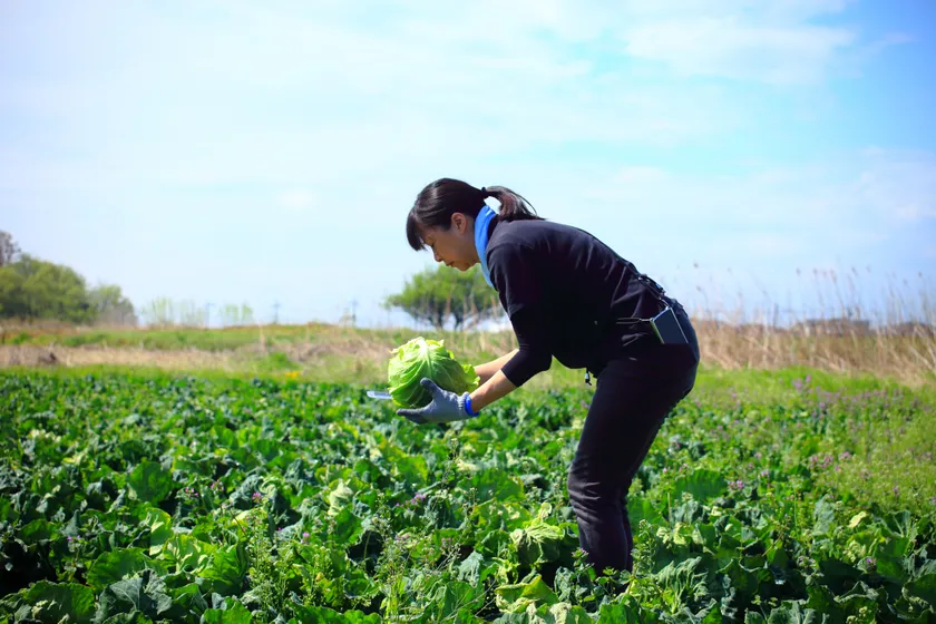 14年前よりキャベツの栽培を始めました。今年は非常によく育っており、柔らかく甘みもある仕上がりになりました。群馬県産の春キャベツを使用した餃子を作りたいと考えていた「みまつ食品」さんを、ご紹介されました。春キャベツは甘みが強く柔らかくみずみずしい反面、鮮度の低下も早く、地理的な制約を受ける野菜でした。今回は、みまつ食品と当園は距離にして約3キロしか離れておらず、収穫後10分以内に納品出来るため鮮度抜群の状態で納品することが出来ました。地理的なポテンシャルを十分に発揮することが出来ました。