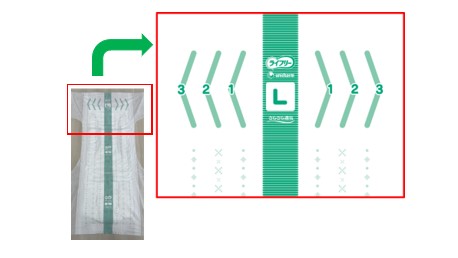 ~ウエストテープの貼り付け位置が分かりやすいマークを採用し 簡単に正しく装着できる~