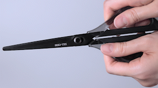 本商品は刃体がスライド式になっており、刃先を少し出す事ができるため、ネット注文で届いたダンボール等を、ハサミでサッと引くだけで簡単に開梱する事ができるスグレモノです。刃物の町関市の職人が1本1本丁寧に刃付けをしているため、厚紙やビニール等の切りにくいものも軽く切る事ができます。