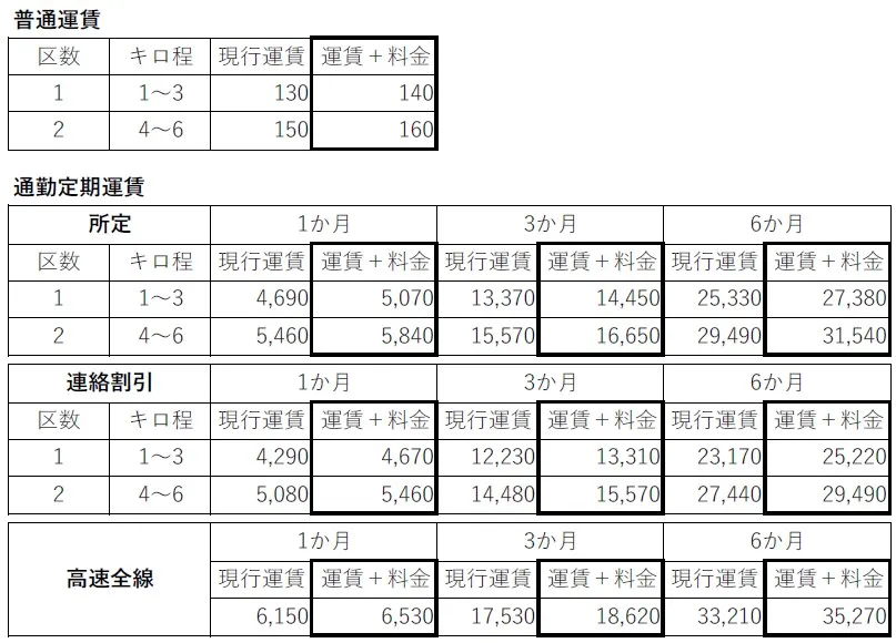 【料金設定後の運賃(大人)】(単位:円)