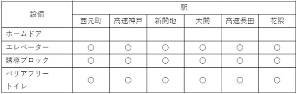 【神戸高速線の主なバリアフリー設備の整備状況】