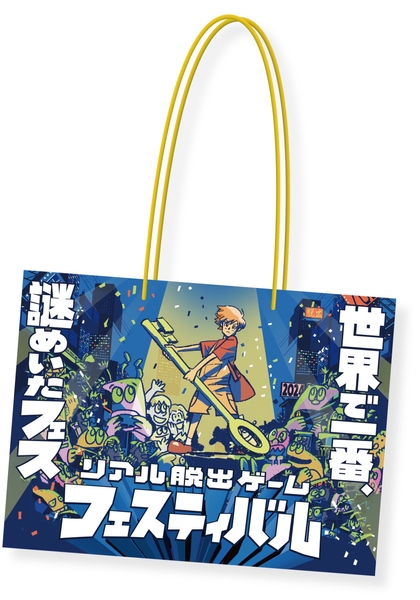 また、『リアル脱出ゲームフェスティバル』のオリジナルグッズをご購入いただいた方には、税込6,000円のご購入毎に「フェス限定謎」をランダムでプレゼント(全3種)。さらに、グッズの持ち帰りにも便利な『リアル脱出ゲームフェスティバル』のメインビジュアルを使用した「フェス限定ショッパー」も税込6,000円以上の購入で付属いたします。