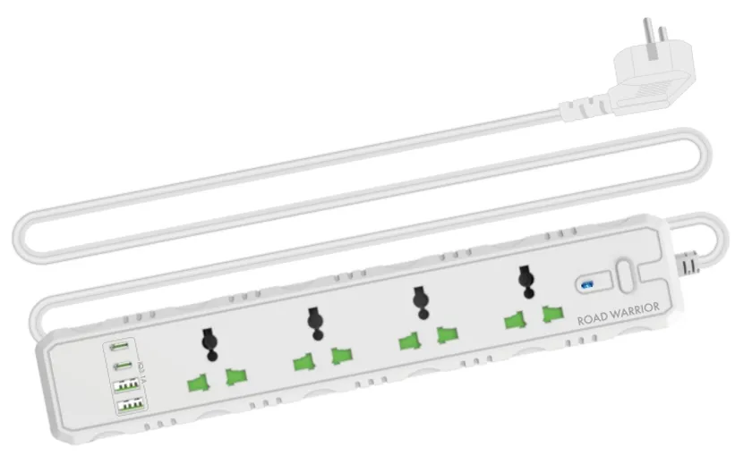 4個口のACコンセントとUSBポート4個、最大8製品の使用が可能。