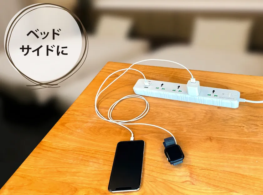 ホテルによってはデスク周りにコンセントがなかったり、床近くにコンセントがありますが、そんな時に長いコードが役立ちます。