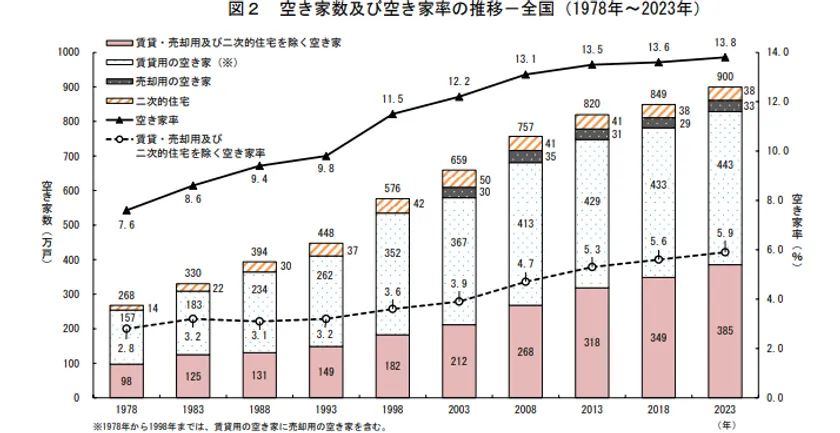 総務省 空き家数及び空き家率の推移-全国(1978年~2023年)