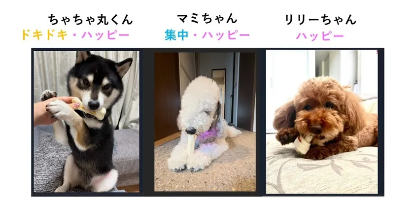 長く噛むことは犬にとって良い影響を与えるという研究があり、日常使いしているおやつや遊びと比較して、愛犬の心拍と各感情がどのように変化するのかのデータを測定し、科学的に分析しました。