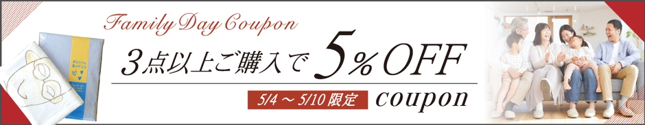 このファミリーの日にちなんで、家族でお揃いのアイテムをゲットしましょう!同一商品を3点以上ご購入時に使用できる5%オフクーポンを配布いたします。このクーポンは、俺流総本家全商品対応となっております。ご家族で相談してお気に入りのアイテムを探してみませんか。