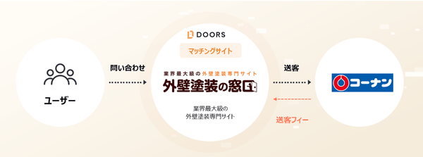 ポート株式会社(代表取締役社長:春日博文、所在地:東京都新宿区、以下:ポート)の完全子会社である株式会社ドアーズ(取締役社長:輿石雅志、所在地:東京都港区、以下:ドアーズ)は、ホームセンターを経営し、リフォーム事業も展開するコーナン商事株式会社(代表取締役社長:疋田直太郎、所在地:大阪府大阪市、以下:コーナン)と業務提携契約を締結し、リフォーム領域のサービス「外壁塗装の窓口」で連携していくことが決まりましたので、お知らせいたします。