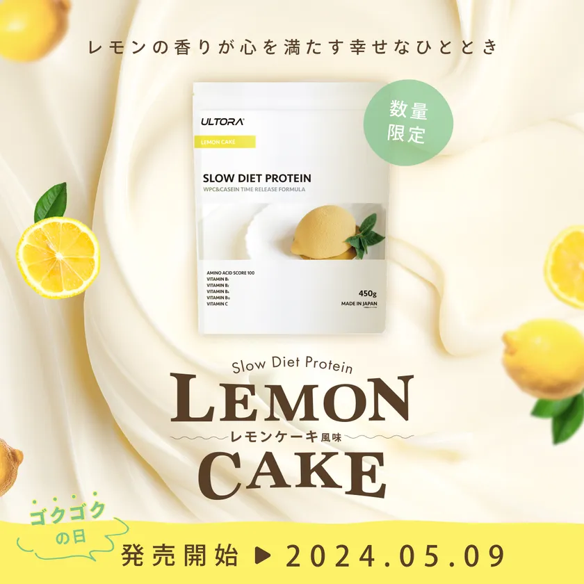株式会社ULTORA(所在地:東京都渋谷区、代表取締役:高田 卓慎)は、「SLOW DIET PROTEIN」シリーズより、新フレーバーとなる「レモンケーキ風味」を、2024年5月9日より販売開始いたします。