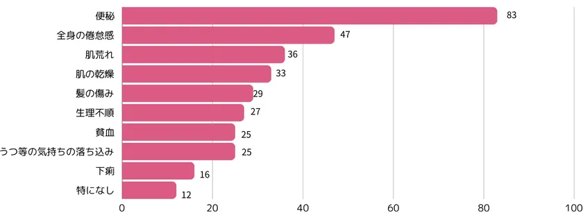 ・ダイエットでの健康被害TOP3は便秘(41%)、全身の倦怠感(22%)、肌荒れ(19%)