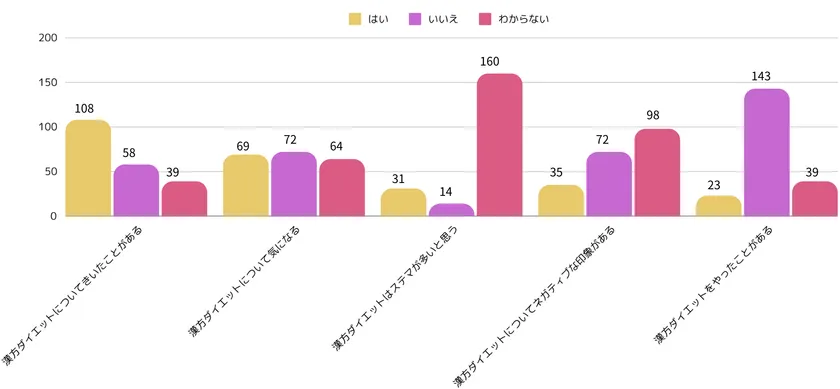 ・漢方ダイエットについて半数の方が聞いたことがあり、約1/3は気になっている。