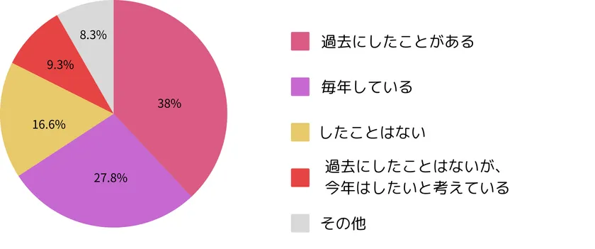 ・今年、夏に向けてダイエットをしようとしているのは1/3程度。夏に向けてのダイエット経験者は66%で、まったくしたことがない/興味がない人は15%程度。