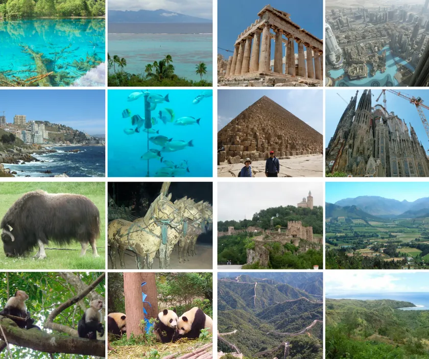 ペルーのインカ帝国の遺跡、中国の万里の長城、タヒチのサンゴ礁、南アフリカの自然動物地域、ヨーロッパ諸国の歴史と街並み、そしてその土地でしか味わえない食べ物など、世界は美と驚きに満ちていることを思い出させてくれます。