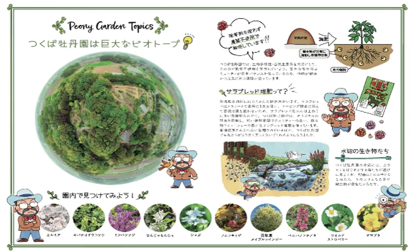 4月下旬までは牡丹が咲き誇り、44日間の開園期間中の終盤にはシャクヤクが園内を彩り最終日まで来園客を魅了します。1989年に開園した「つくば牡丹園」は、今年で35周年を迎え、記念イベントや4月20日には新品種「天使の歌声」の開花、ゴールデンウィークには、例年と違ったコーラル系のシャクヤクの花筏をご覧いただきました。閉園後すぐに来年の開園に向けて、1年間農薬不使用栽培のための鍵となる夏草の管理や土作り・造園作業・ファームの野菜、果物を育てていきます。