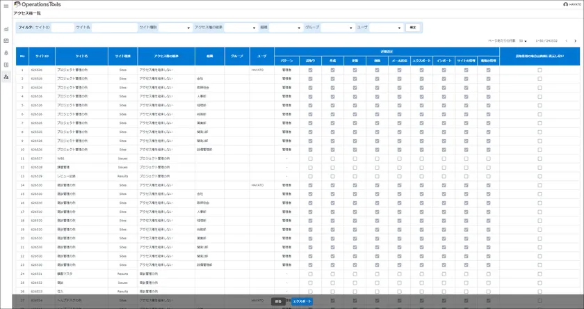 各サイトに設定されたアクセス権限を一覧で確認できるアクセス権一覧