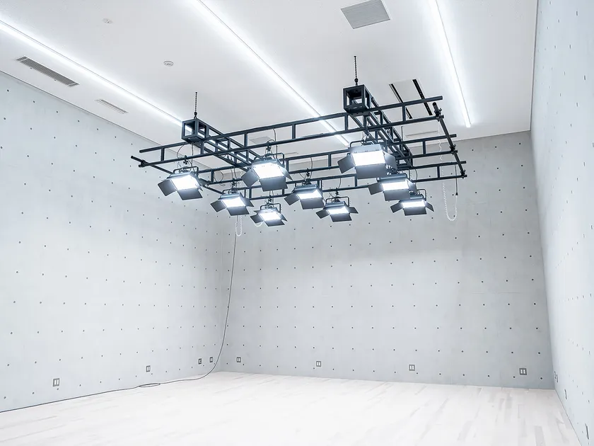 メインとなる第1スタジオは、普通車や小型船舶の撮影はもちろん、大型トラック、クレーン車、高所作業車、さらには油圧ショベルなどの大型建設用重機の撮影も可能な広さを有しています(面積376m2、高さ9m)。防音壁を施した第2スタジオにはキッチンを装備(面積97m2、高さ5m)。料理の撮影やライブ配信ができるほか、ギャラリーとしての使用も可能なユーティリティスペースです。