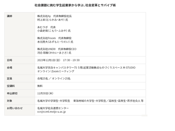 【名城大学】社会課題に挑む学生起業家から学ぶ、社会変革とサバイブ術「DONUTS(ドーナツ)」