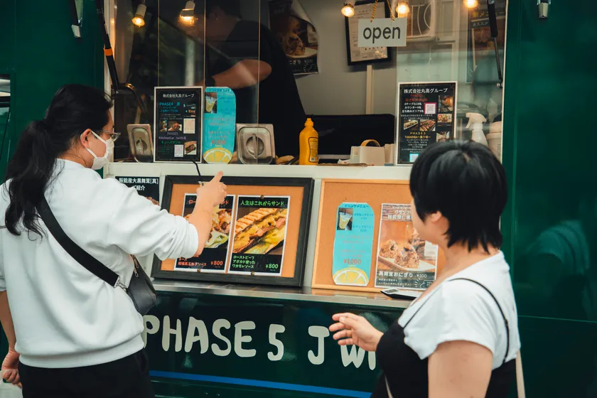 <ワテラスモールの屋台や初出店のキッチンカーなど充実したフードメニュー>